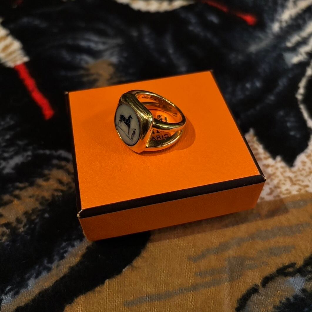HERMESのコロゾシグネットリング。Kingnuの常田さんがご着用されたことで人気急上昇中ですが、すでに廃盤となっているこのシリーズはヴィンテージ好きにも話題となっています。箱無しでのお渡しとなります。