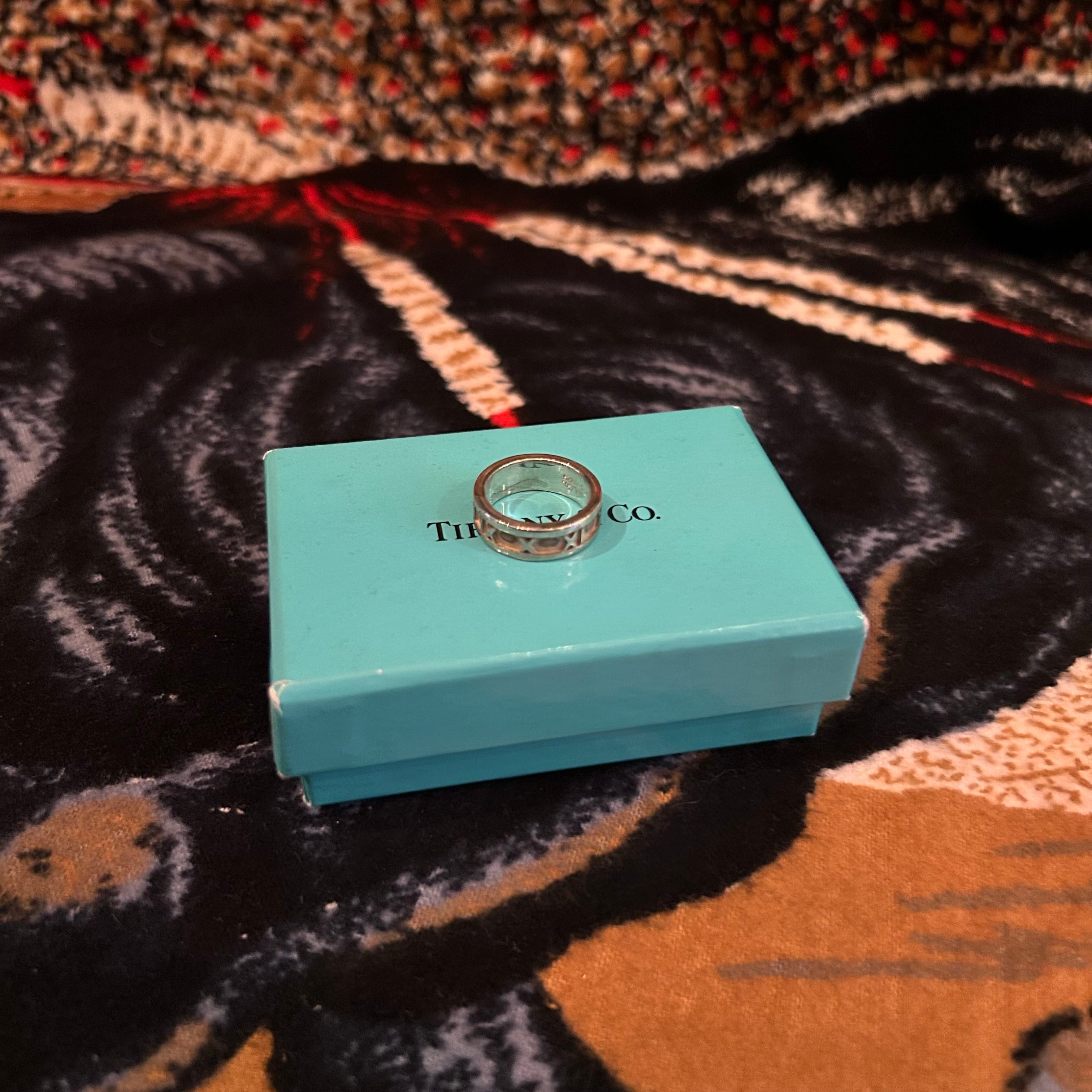 Tiffanyの中でも長く愛されるアトラスシリーズで、ローマ数字を型抜きしてリング全体にデザインされているのが特徴です。材質はSV925で錆びにくい素材で長い年数お使いいただけます。