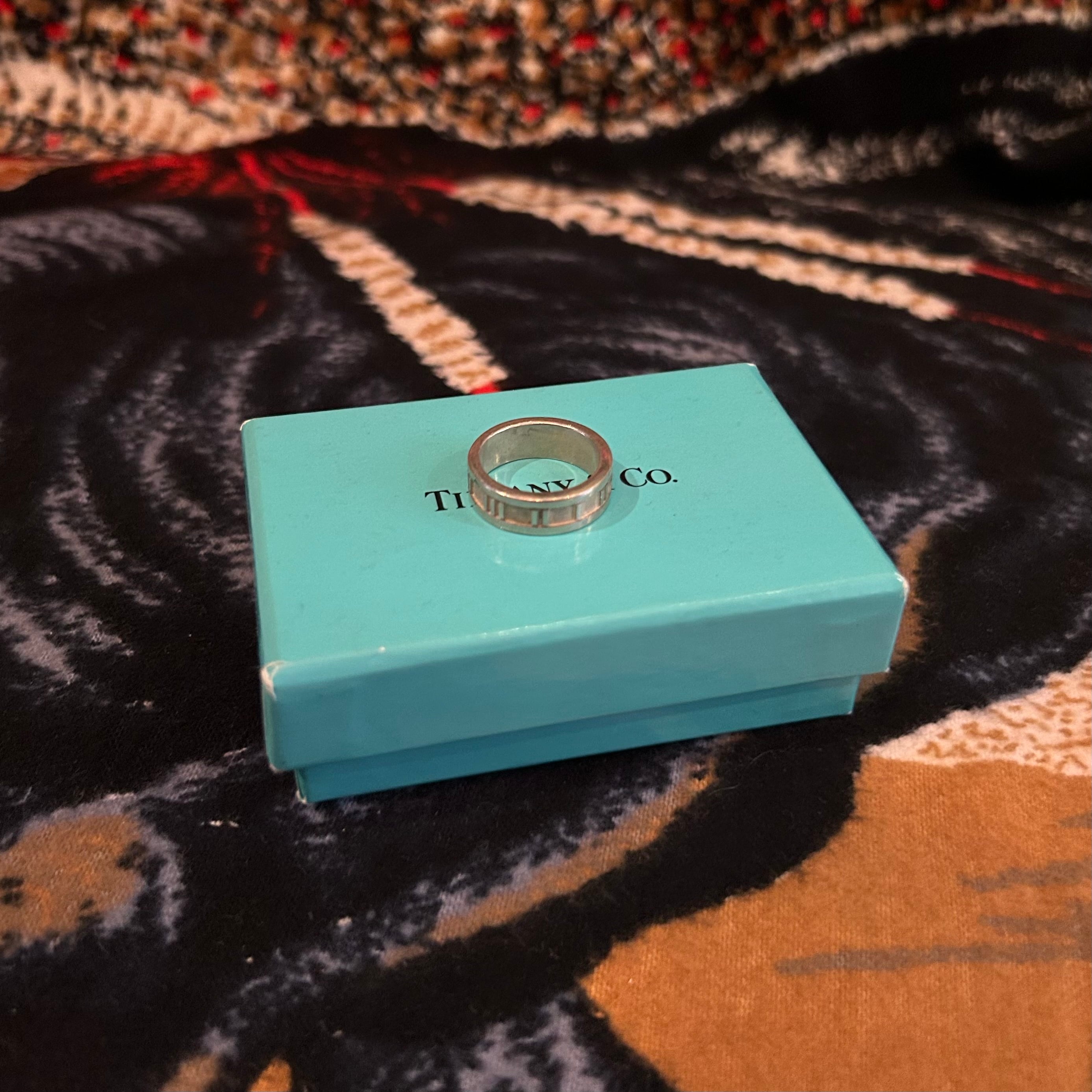 Tiffanyの中でも長く愛されるアトラスシリーズで、ローマ数字を型抜きしてリング全体にデザインされているのが特徴です。材質はSV925で錆びにくい素材で長い年数お使いいただけます。