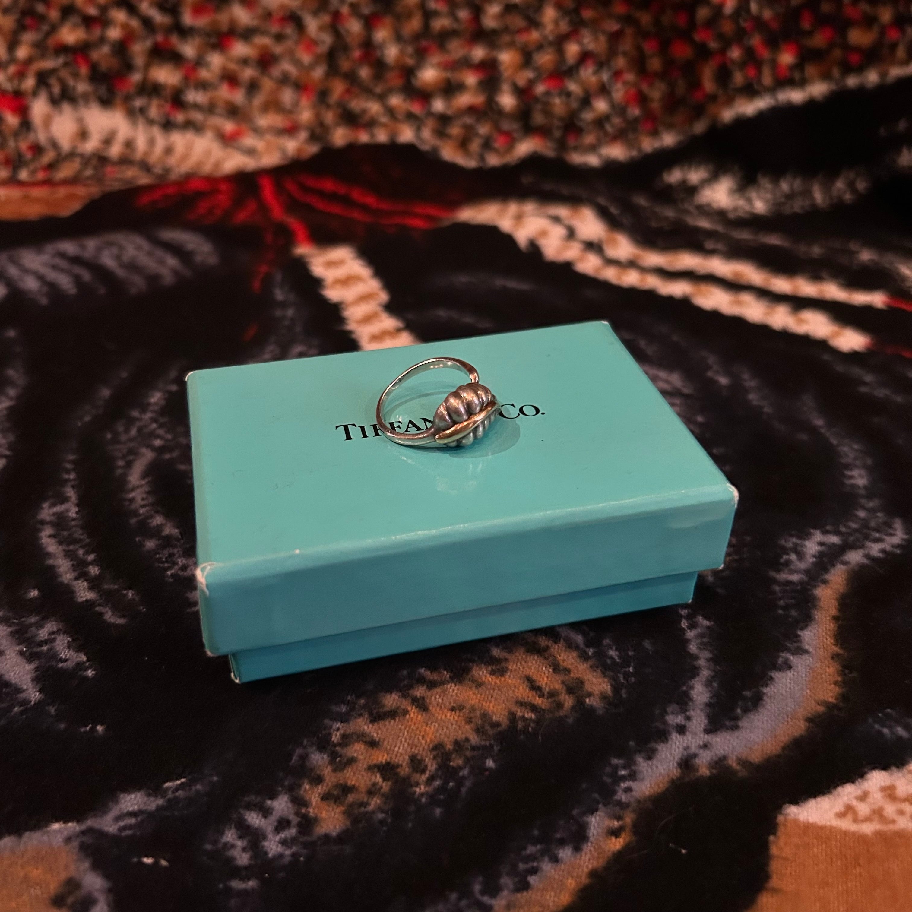 OLD Tiffanyのリーフリング。リーフ中央部分のみゴールドカラーのシルバーリングです。材質はSV925とK18で、錆びにくく長くお使いいただきやすいです。こちらは箱無しでのお渡しとなります。