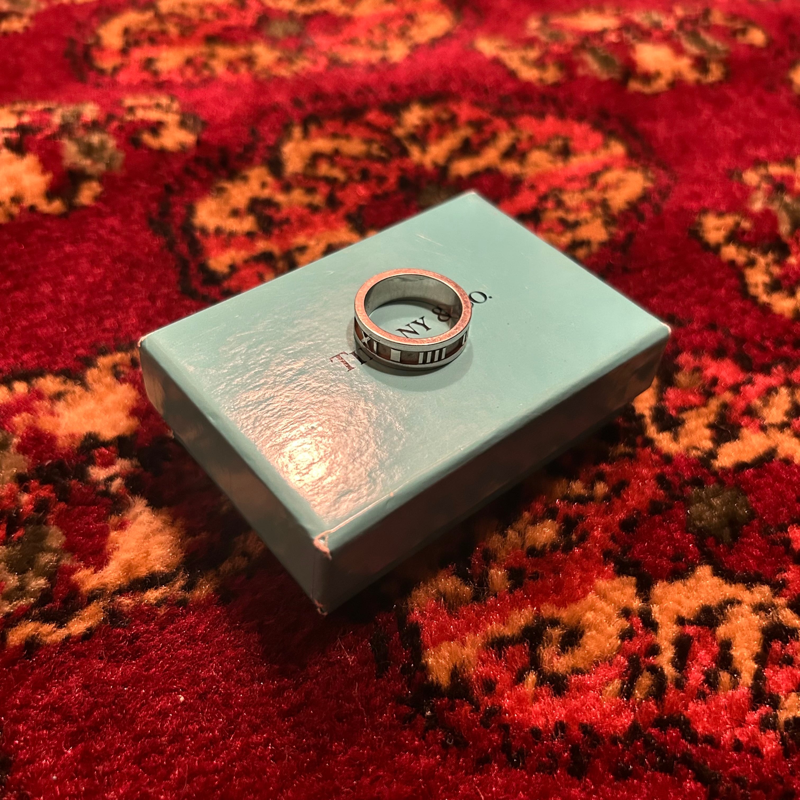 Tiffanyの中でも長く愛されるアトラスシリーズで、ローマ数字を型抜きしてリング全体にデザインされているのが特徴です。材質はSV925で錆びにくい素材で長い年数お使いいただけます。