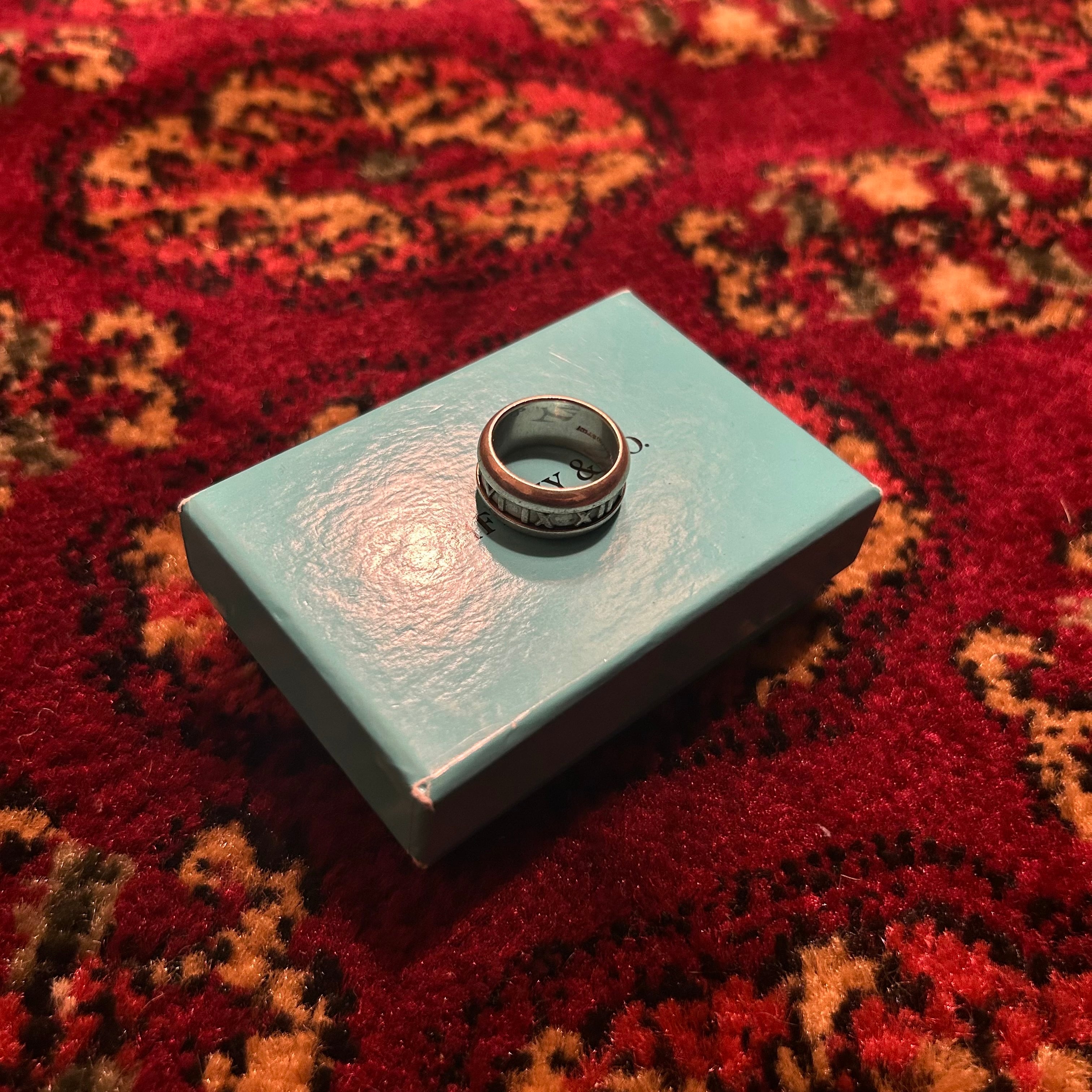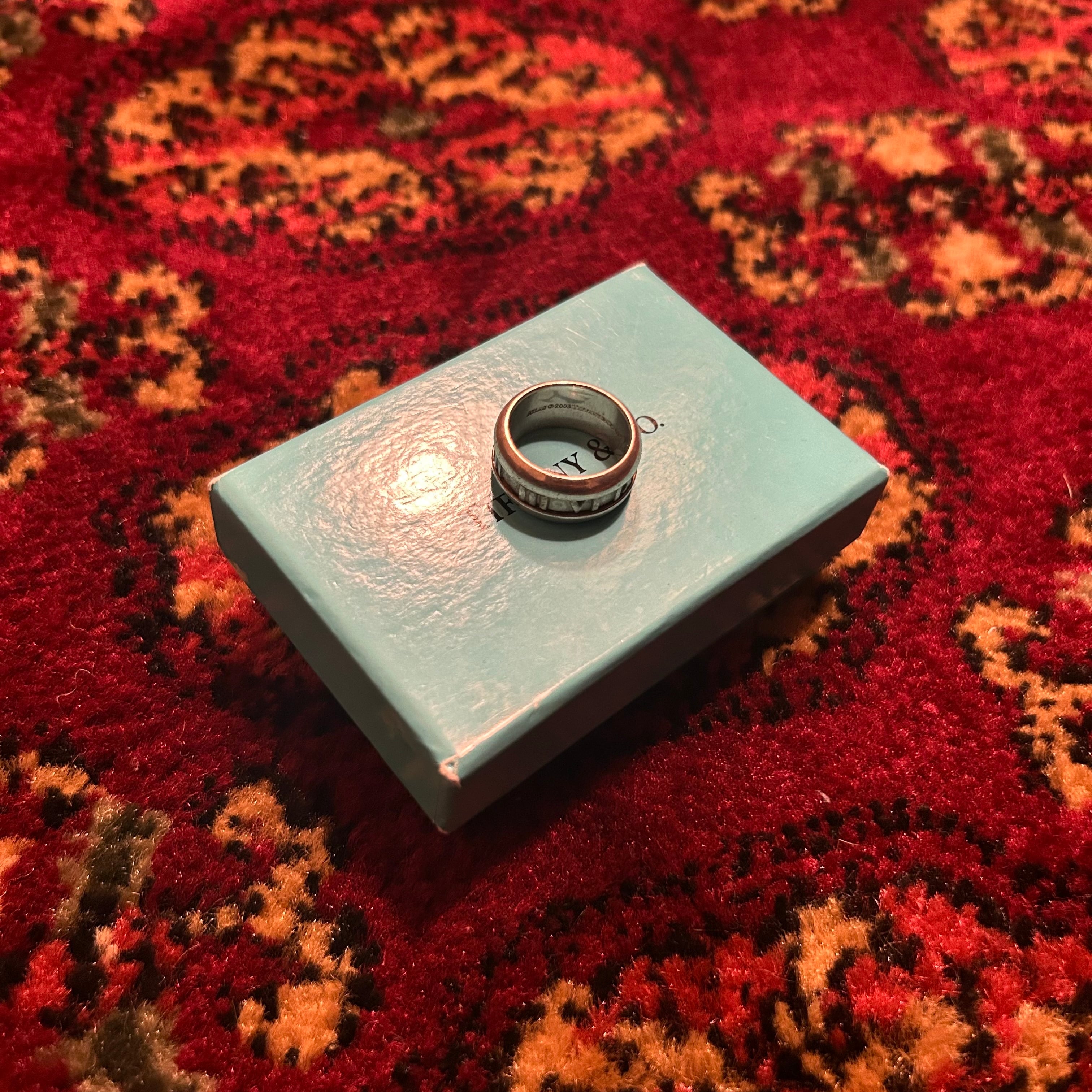 Tiffanyの中でも長く愛されるアトラスシリーズで、ローマ数字を型抜きしてリング全体にデザインされているのが特徴です。材質はSV925で錆びにくい素材で長い年数お使いいただけます。