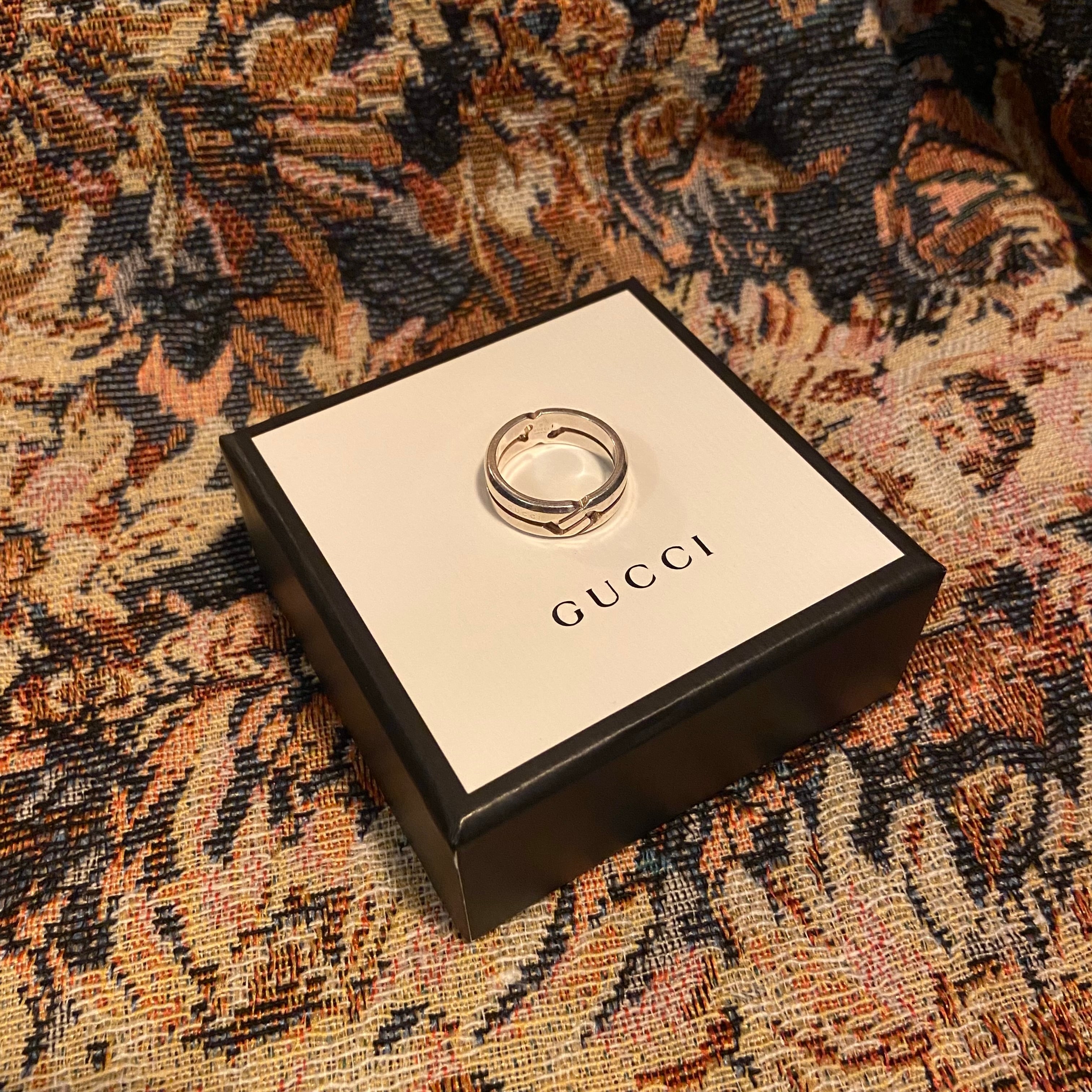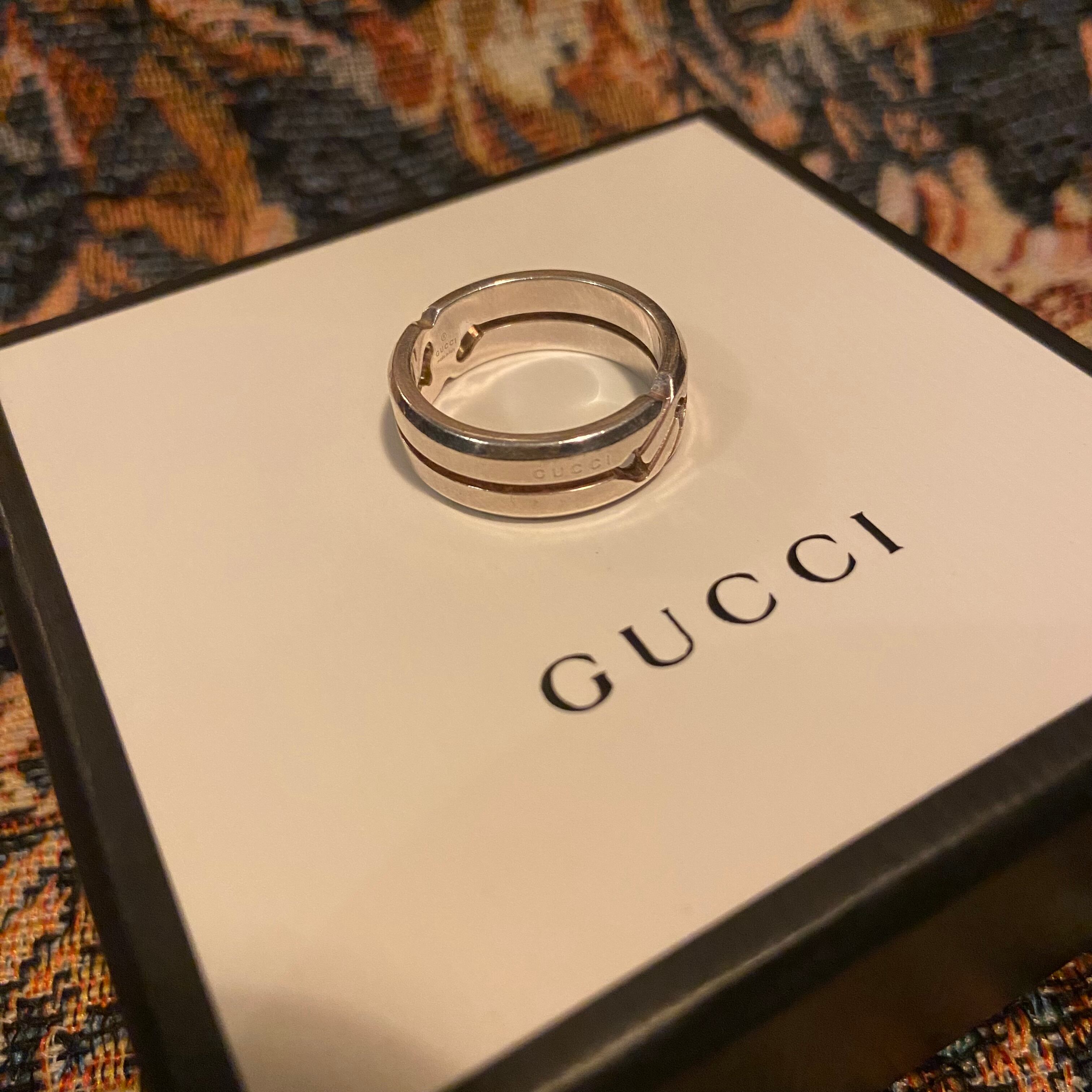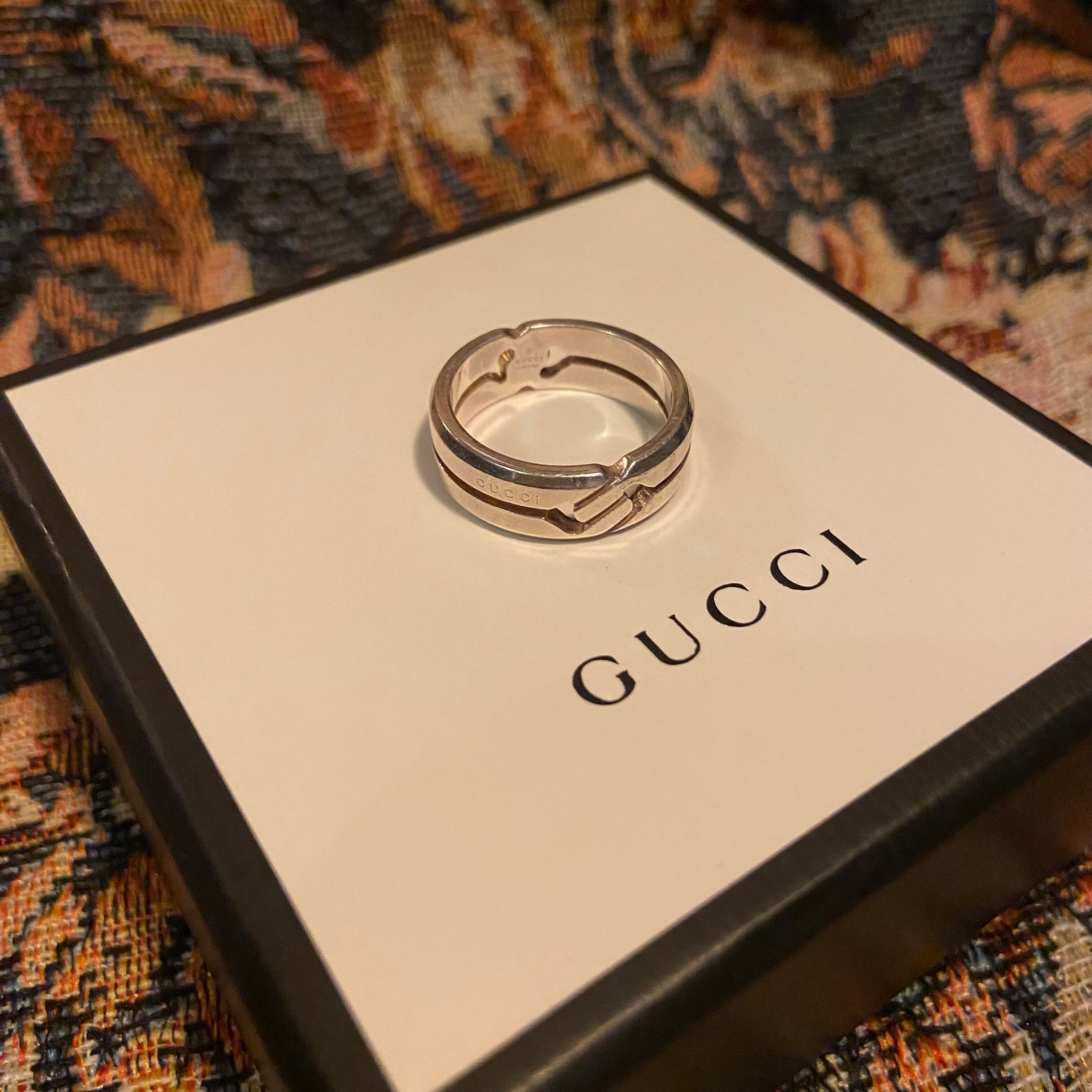 洗練されたシルエットに、ブランドを象徴するインターロッキングGをあしらった存在感抜群のデザイン。上品さとモード感を兼ね備え、ユニセックスで楽しめる逸品。普段使いから特別な日まで、指先をクラスアップさせます。こちらは箱無しでのお渡しとなります。