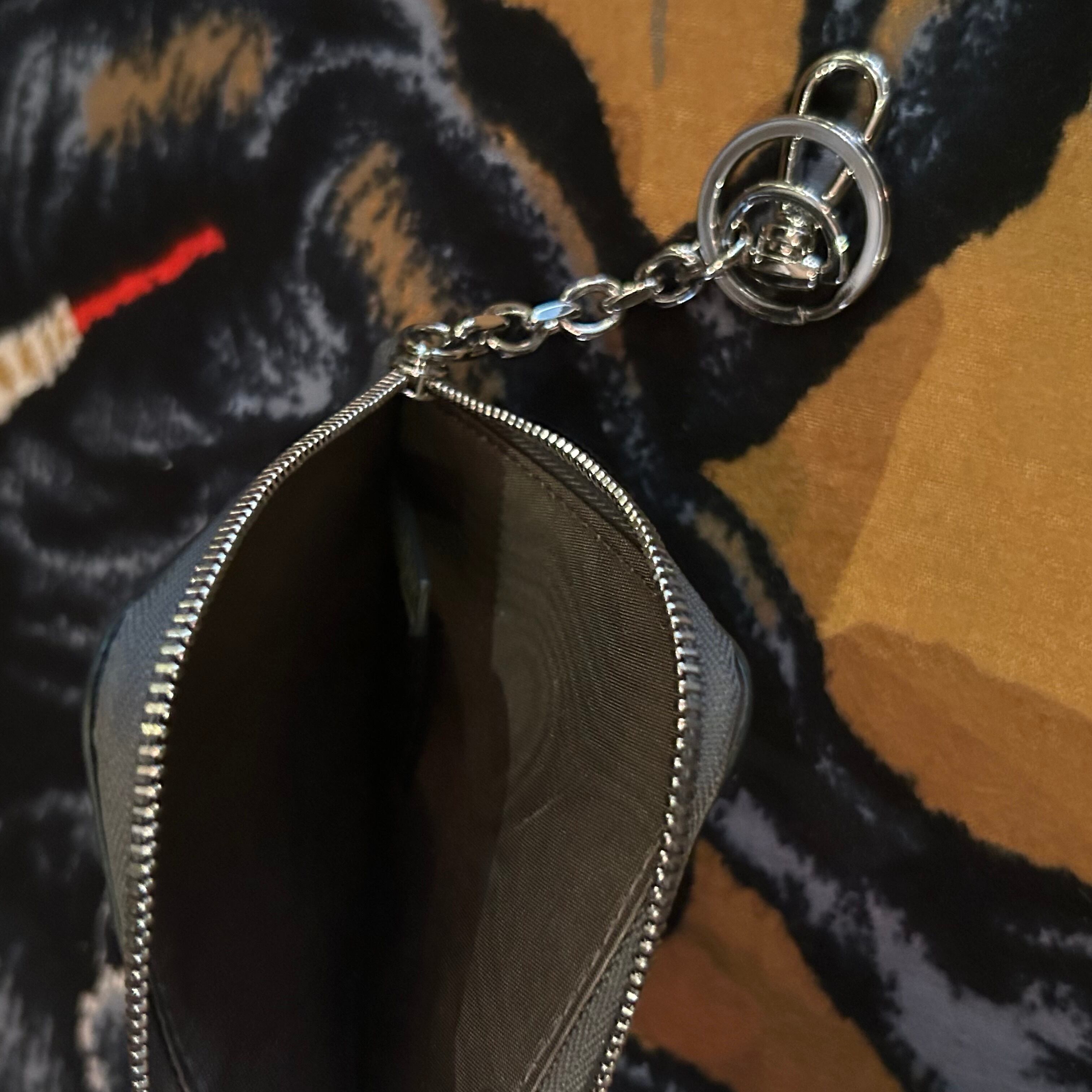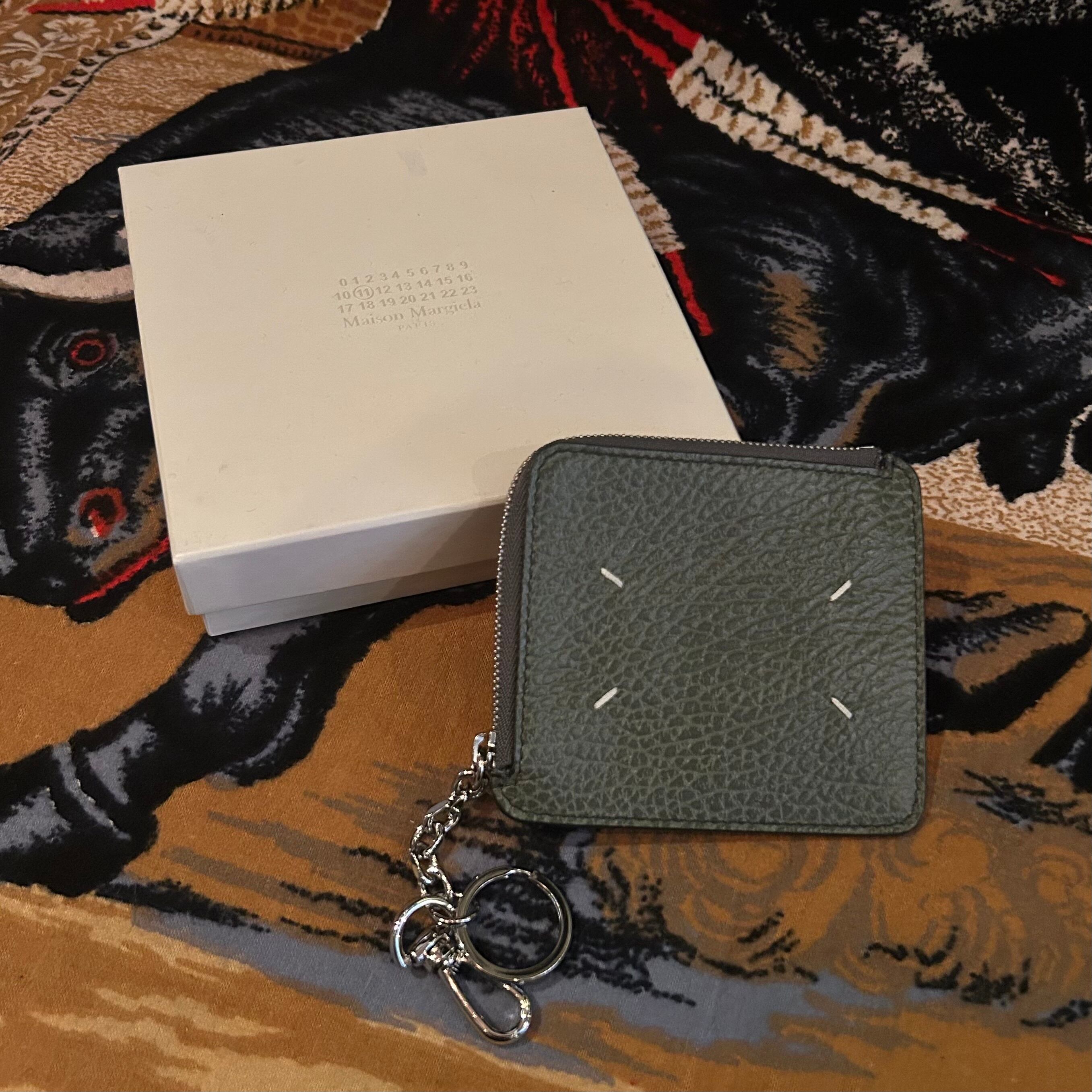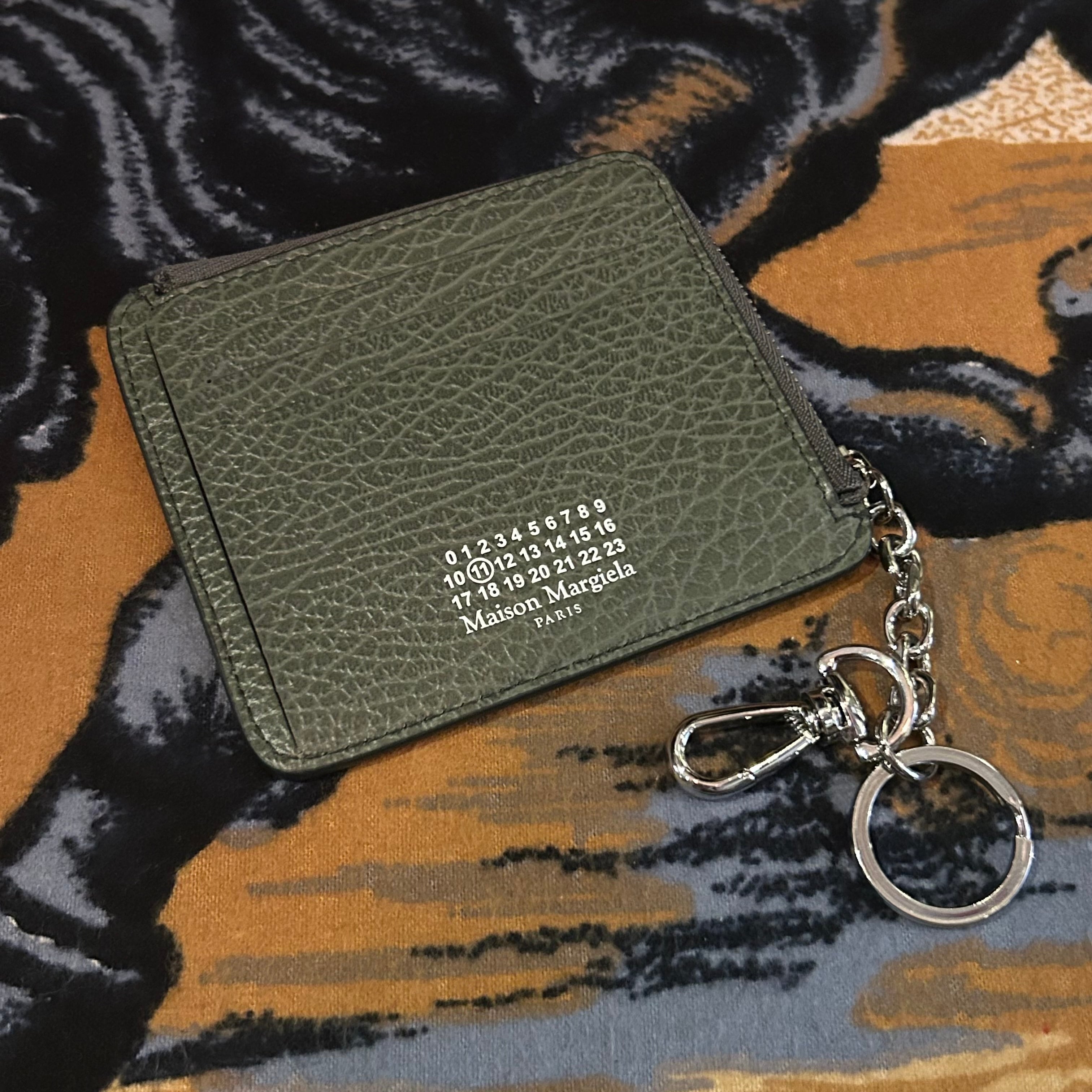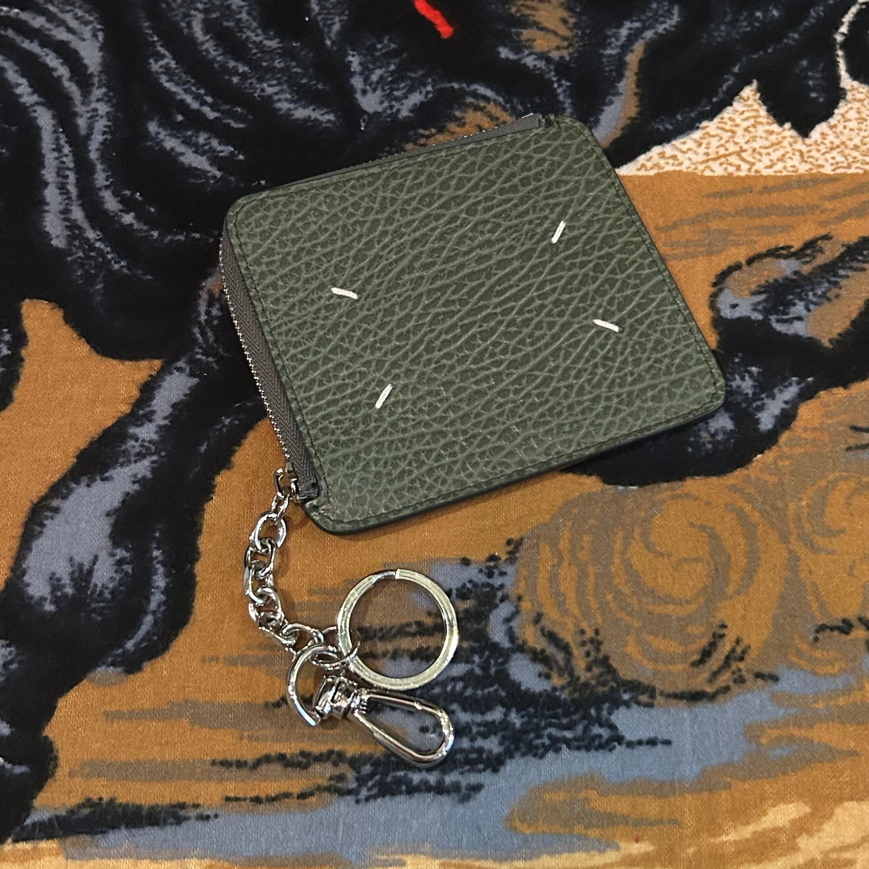 Maison Margielaのキーチェーンウォレット。カードケースやコインケースとしてもお使いいただけるこちらのウォレットはチェーン付きナスカンフックとキーリングが装備され、ボディにブランドの特徴である4本のステッチとナンバリングのロゴもデザインされています。L字ファスナー式で開く大きめの小銭入れなので、コインや鍵など貴重品の収納も楽々できる便利なお財布です。