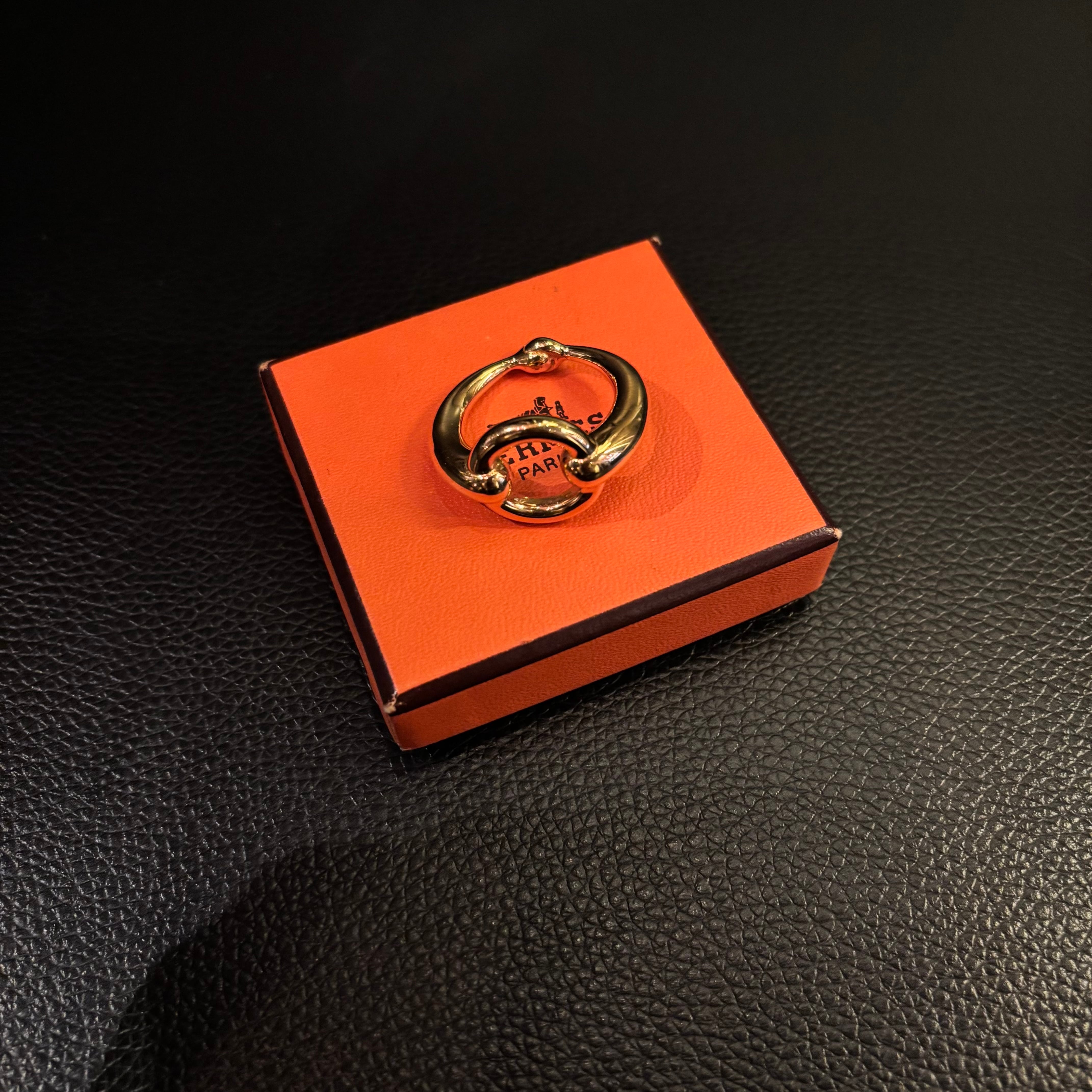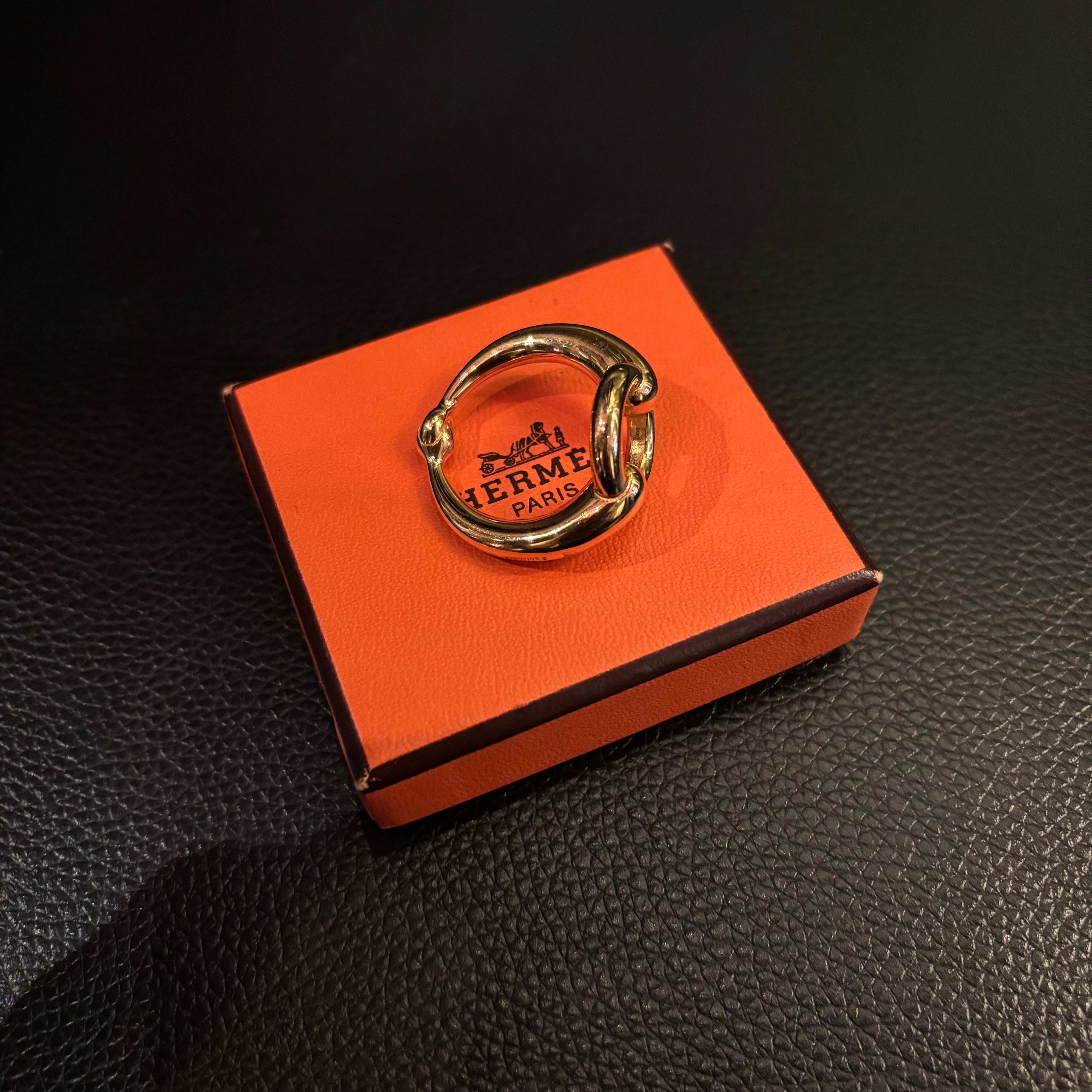 華やかなデザインが魅力のHERMESスカーフリング。シンプルながらもエレガントな仕上がり。