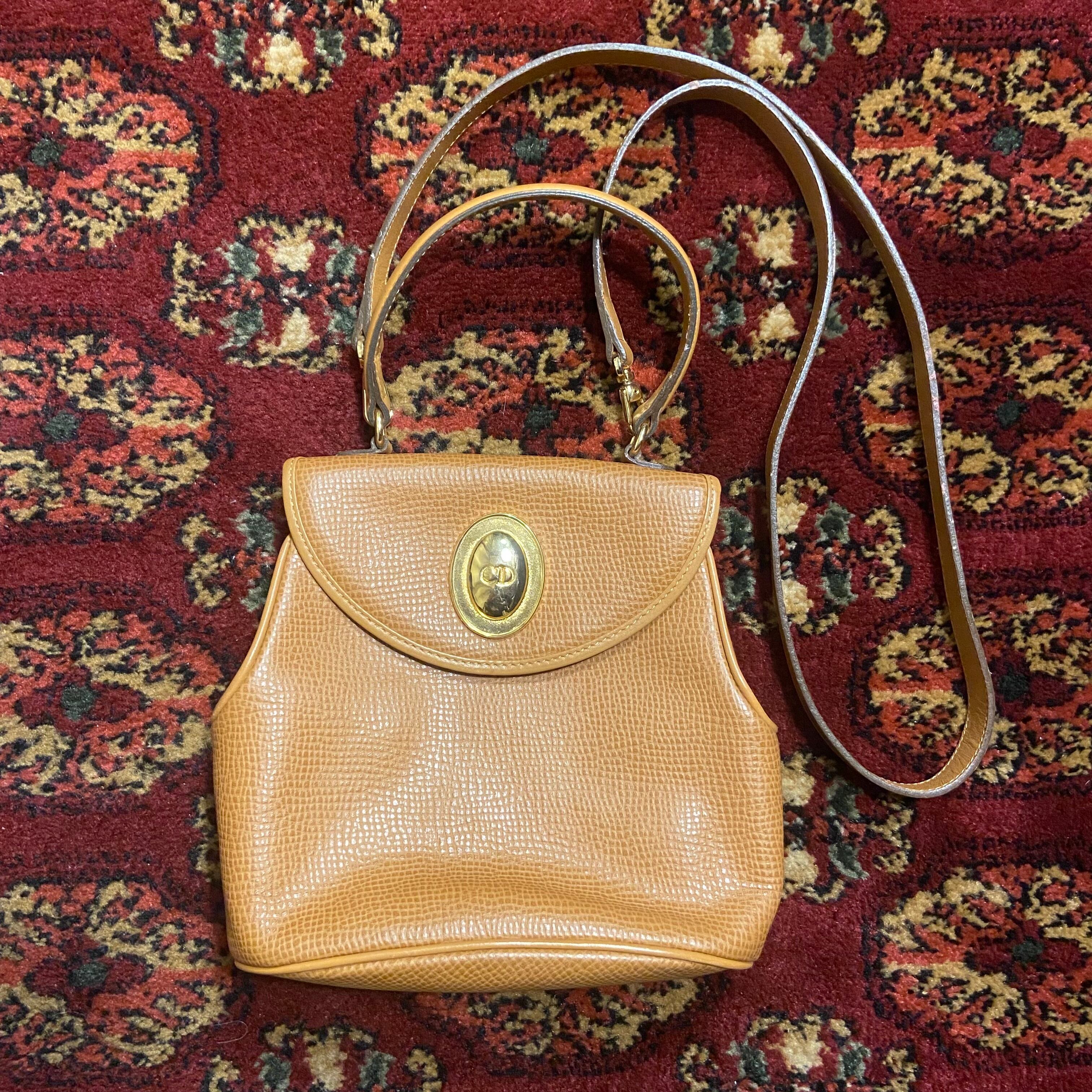 クラシカルな魅力が漂うChristian Diorのヴィンテージバッグ。キャメルブラウンの上質レザーに「CD」ロゴ金具が映え、上品でタイムレスなデザインです。ショルダーにもハンドバッグにも使える2WAY仕様。